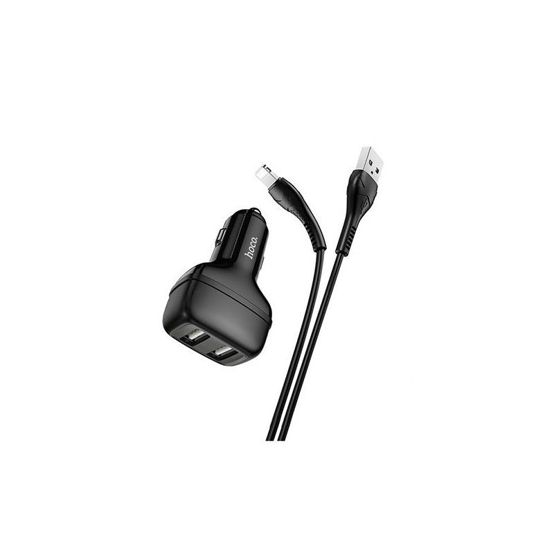 - Chargeur de voiture allume-cigare avec double sortie USB et câble pour Lightning