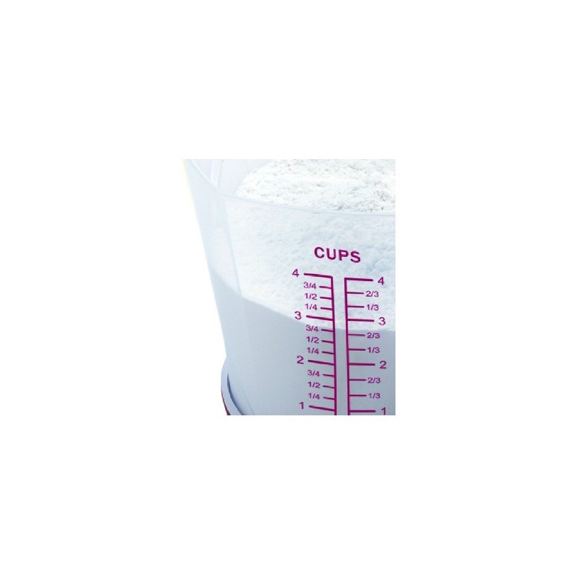 Mesure de volume et de poids - Précision de mesure Fonction tare -Peser jusqu’à 3 Kg - Utiliser la fonction «tare» pour réinitialiser la pesée dans un récipient ou pour ajouter progressivement des aliments sans en changer- Facile à nettoyer, le verre doseur est amovible.