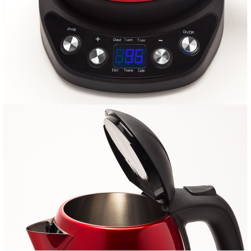 Puissance 2200W - Capacité 1.2L - Ecran LCD - Indicateur de niveau d'eau - Base de connexion multidirectionnelle - Couvercle à charnière - Thermostat de fonctionnement - Longueur du câble 0.8m - Couvercle de sécurité - Sécurité thermique - Arrêt automatique à l'ébullition - Dimensions 228 x 166 x 211 mm - Poids 5.7 Kg - Garantie 1 an