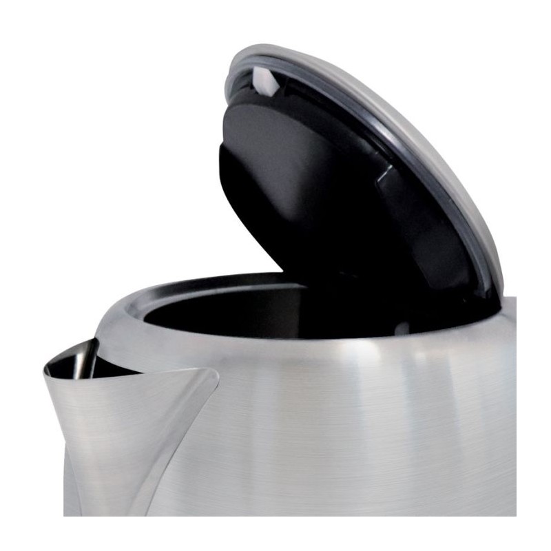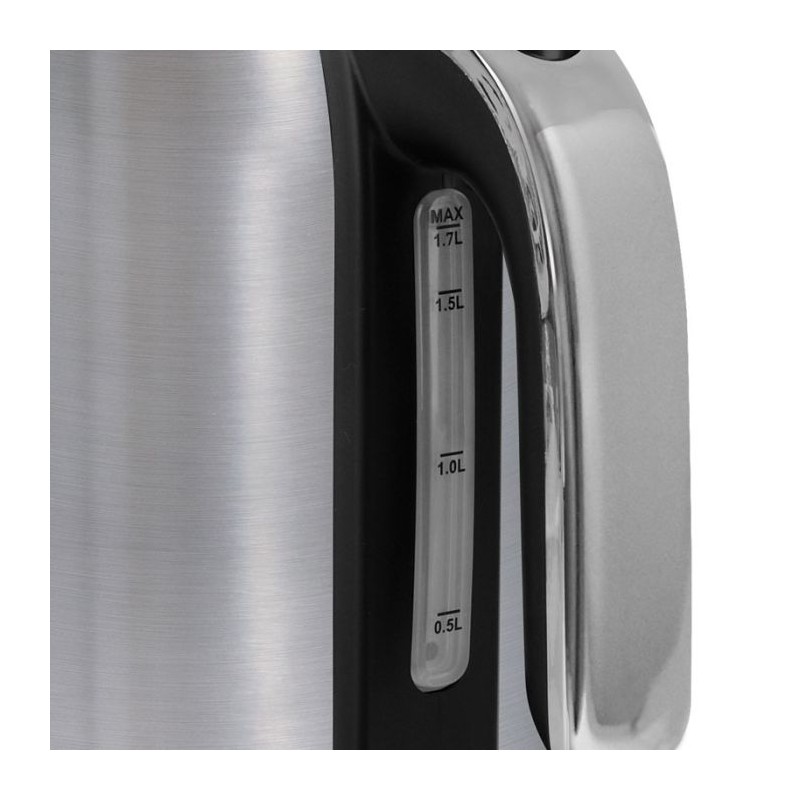 Puisaance: 2200 Watts - Capacité: 1.7 Litres - Indicateur de niveau d'eau - Thermostat de fonctionnement - Base de connexion multidirectionnelle - Couvercle de sécurité - Bouton poussoir - Prise en main facilitée - Base rotative 360° - Couleur: Inox - Garantie: 1an
