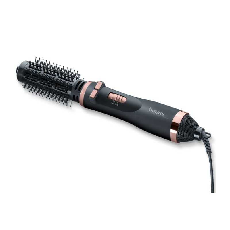Puissance: 1000 Watts - Technologie ionique - 2 embouts interchangeables: brosse thermique, brosse bouclante - 2 niveaux de chaleur et 2 puissances de ventilation - Tension: 220-240V - Rotation automatique pour une mise en forme ultra-simple et rapide - Revêtement en céramique - Position air froid - Pivot 360° - Anneau de suspension - Surface Soft Touch - Couleur: Noir - Garantie: 3 ans