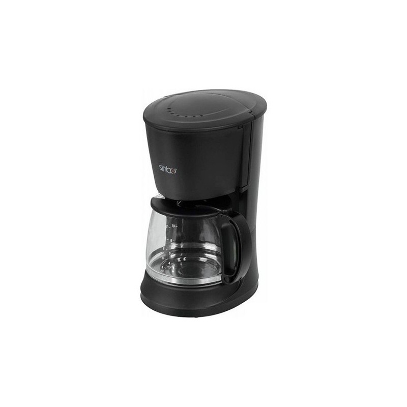 Puissance 800W - 10 Tasses - Verseuse en verre 1.21L - Système anti-gouttes - réservoir d'eau avec repères de niveau d'eau - Plaque métallique avec fonction Garde au chaud - Porte filtre pivotant - Bouton Marche/Arrêt avec voyant lumineux - Filtre permanent avec poignée - Garantie 1 an