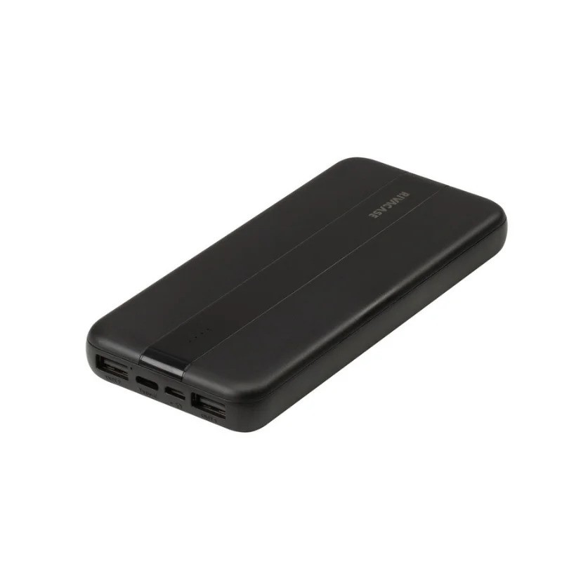 Power Bank RivaCase 20000 mAh -Capacité : 20 000 mAh (37 Wh) -Sortie Totale : 10W – 2.1A -Ports USB-A : 5V–1A / 5V–2.1A -Ports USB-C : 5V–2.1A -Entrées : Micro USB & USB-C (5V–2A) -Recharge 2 appareils simultanément -Dimensions : 68 x 17 x 150 mm -Poids : 380g