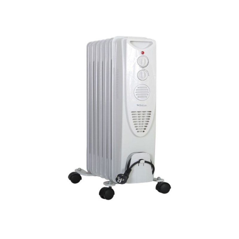 Radiateur Bain d’Huile BIOLUX - Puissance: 1500 Watts - Nombre d'Éléments: 7 éléments radiants - Thermostat réglable - Protection de surchauffe - Interupteur avec indicateur lumineux - Roulette souple pour mouvement facile - Cache cable - Dimensions: 37.5 x 16.5 x 66 cm - Couleur: Blanc - Garantie: 2 ans