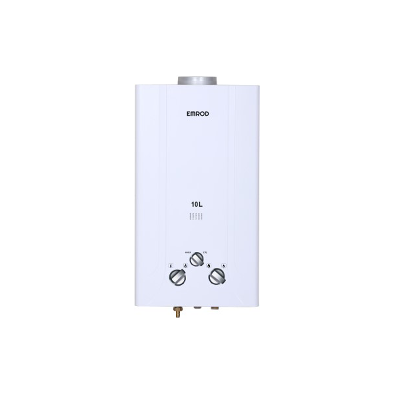 Chauffe eau EMROD à Gaz - Gaz bouteille (GPL) - Volume: 10 L - Pression d’eau appropriée : 28MPa - Entrée évaluée de la chaleur : 20 KW - Dimensions : 58,5 x 33 x 18,5cm - Mode d’allumage : Allumage d’impulsion contrôlé par l’eau - Poids Net : 7.85 Kg Alimentation Energie : 3V - Garantie : 1an