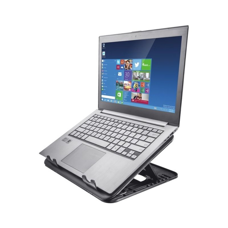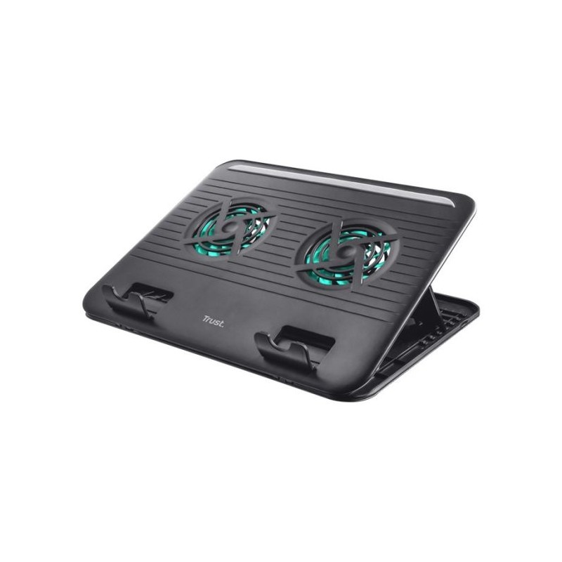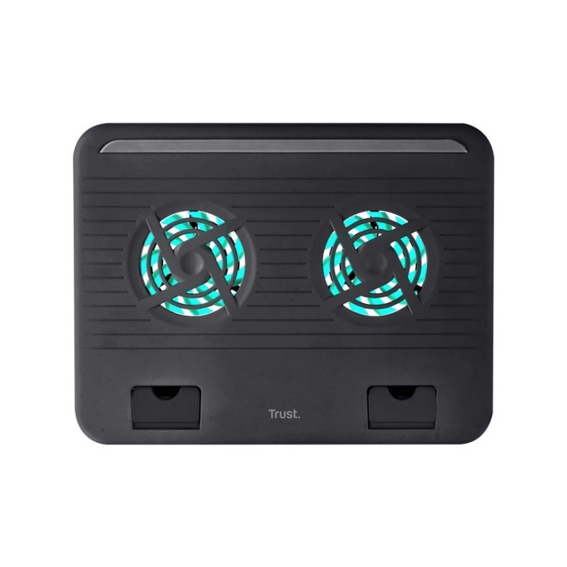 Refroidisseur TRUST CYCLONE - Pour Pc Portable 15.6" - Interface: USB - 2 x ventilateur - Vitesse de rotation: 1800 tr/min - Réglage de la hauteur (par paliers): 8 étapes - Poids max.: 10 kg - Dimensions: 300 x 230 x 15 mm - Poids: 531 g - Couleur: Noir - Garantie: 1 an