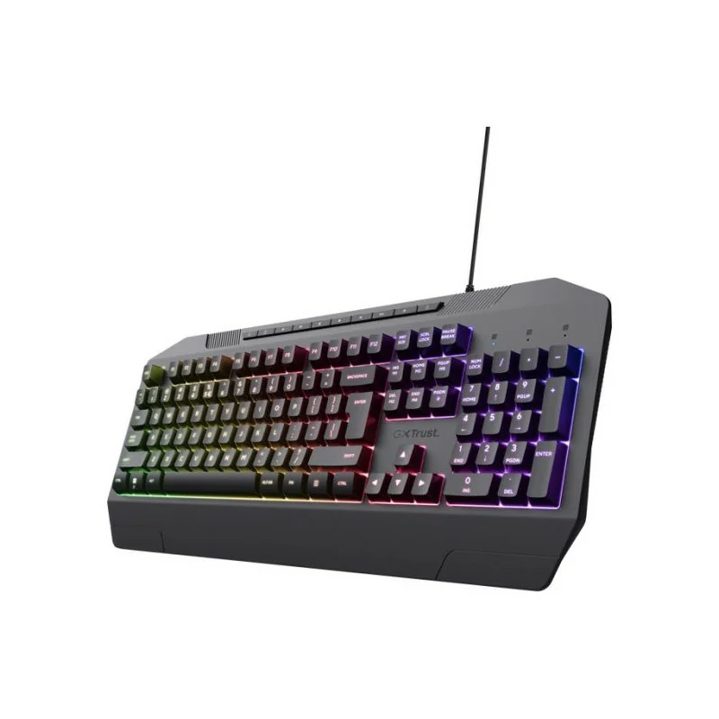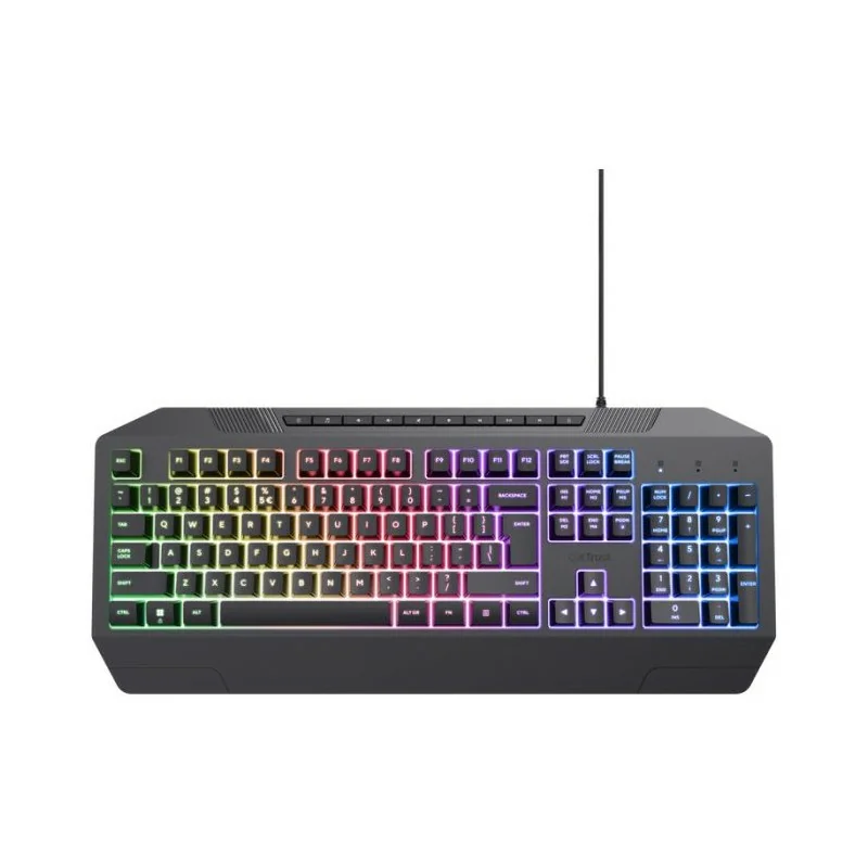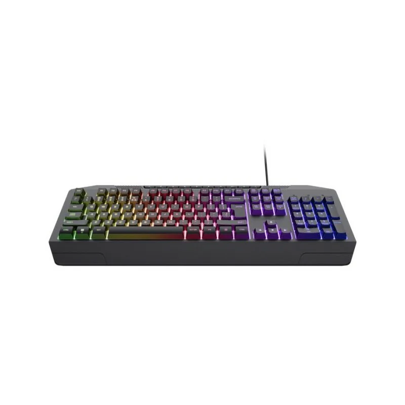 Technologie de Connectivité: Filaire - Interface: USB - Norme du clavier: QWERTY - Nombre de touches: 104 - Type de Clavier: Membrane - Durée de vie de la clé: 5000000 de presses - Anti-ghosting: 8 touches de retournement - Temps de réponse: 8 ms - Indicateurs: Verrouillage des majuscules, Verrouillage numérique, Arrêt du défilement, Mode jeu - Rétroéclairage vagues arc-en-ciel - Dimensions: 438 x 125 x 40 mm - Poids: 621g - Couleur: Noir - Garantie: 1an.