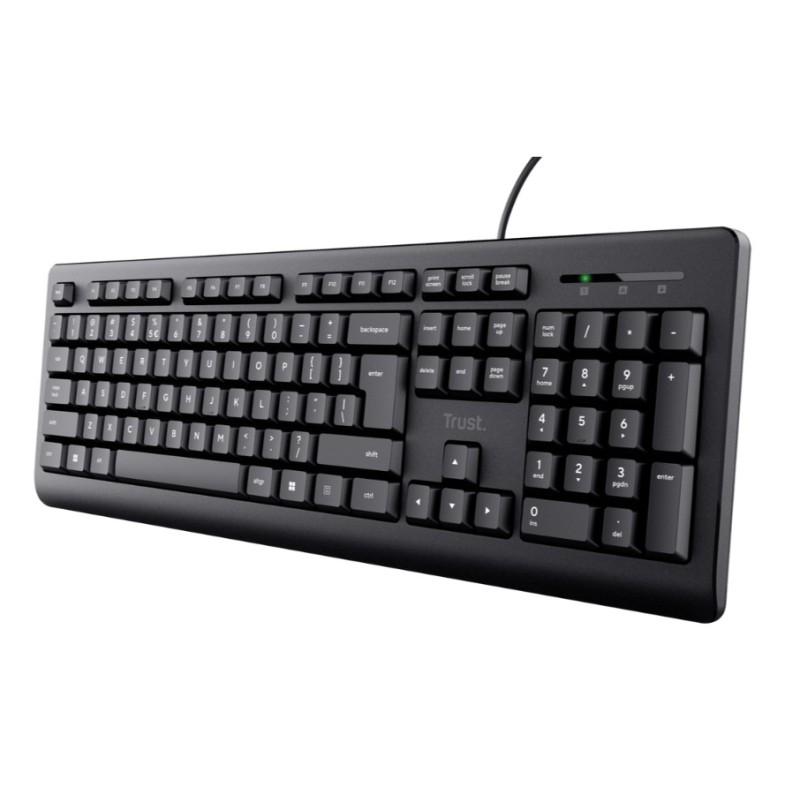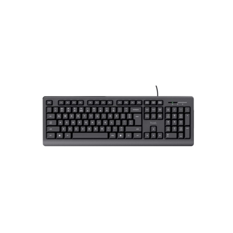 Clavier TRUST PRIMO - Technologie de connexion: Filaire - Interface avec l'ordinateur: USB 2.0 - Norme Clavier: Azerty Francais - Nombre de Touches: 104 - USB universel, Plug & Play - Facile à nettoyer et à transporter, extrêmement silencieux - Clavier fin et pleine taille - Tactilité confortable - Longueur du câble: 1.80 mètre - Dimensions : 30 x 449 x 148 mm - Couleur: Noir.