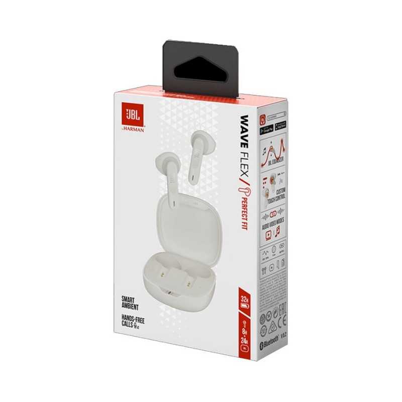 Connectivité: Bluetooth 5.2 - Autonomie de batterie: Jusqu’à 32 heures (8 h pour les écouteurs + 24 h avec boitier de charge) - Temps de Charge: 2 heures - Recharge rapide (5 min = 1 h de lecture - Controle tactile - Bouton multifonction TalkThru - Ambiant Aware: Restez conscient de votre environnement - Appels mains-libres - Son JBL Deep Bass - Microphone intégré - Haut-parleurs de 12mm - Résistant à l'eau: IP54 - Couleur: Blanc - Garantie: 6mois