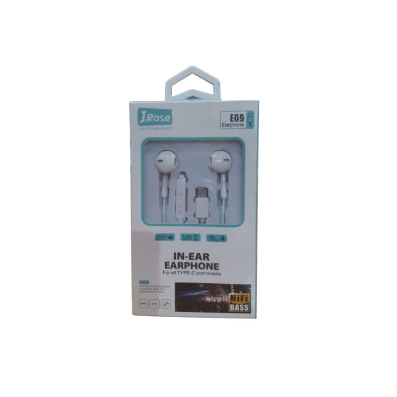 Écouteur avec Micro J&ROSE E09 - Type C - Cable 1.2 M - Couleur Blanc