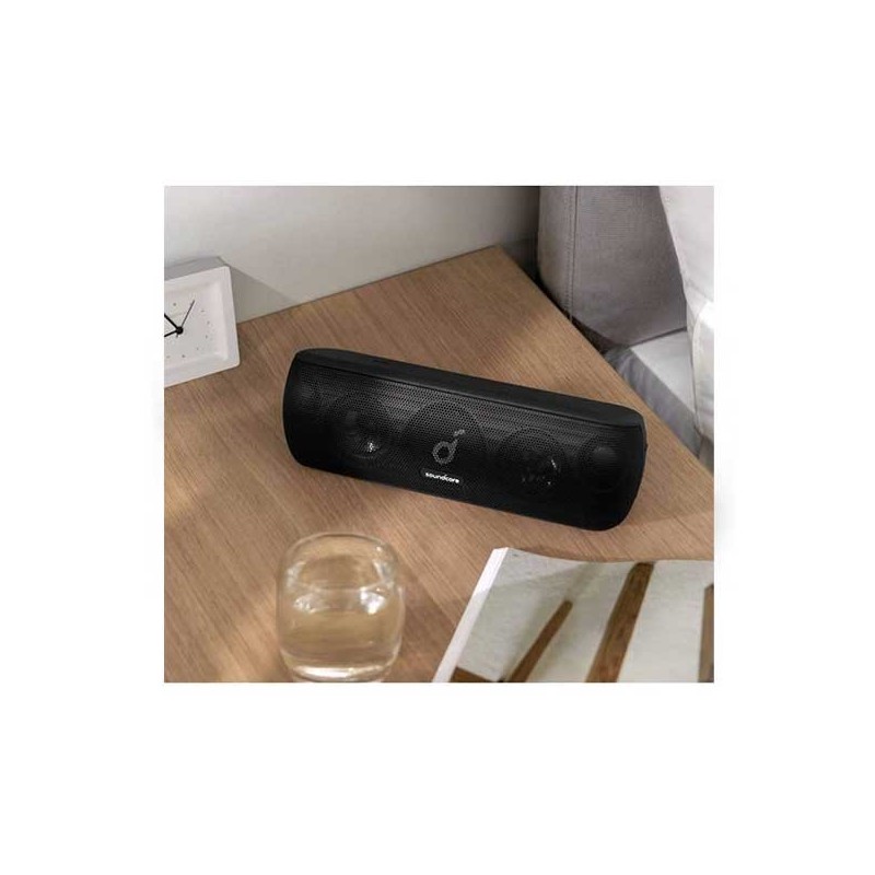 Son Hi-Res 30W - Étanchéité IPX7 - Autonomie Jusqu’à 12 heures - Technologie BassUp - Construction unique - Précision exceptionnelle - Graves et aigus étendus - Connectivité Bluetooth 5.0 - Interface USB Type C - Batterie Li-Ion 6700 mAh rechargeable - Dimensions 8.1 x 7.9 x 25.7 cm