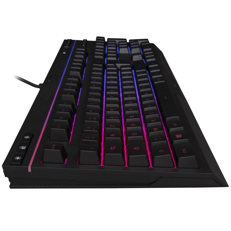 Technologie: Filaire - Azerty - Eclairage RGB : barre lumineuse + effets sur 5 zones - Conception rigide et durable - Touches réactives et silencieuses avec fonction anti-ghosting - résistant aux déversements - Cordon tressé 1.8 m - Dimensions : 443.2 x 175.31 x 35.68 mm - Garantie 1 an
