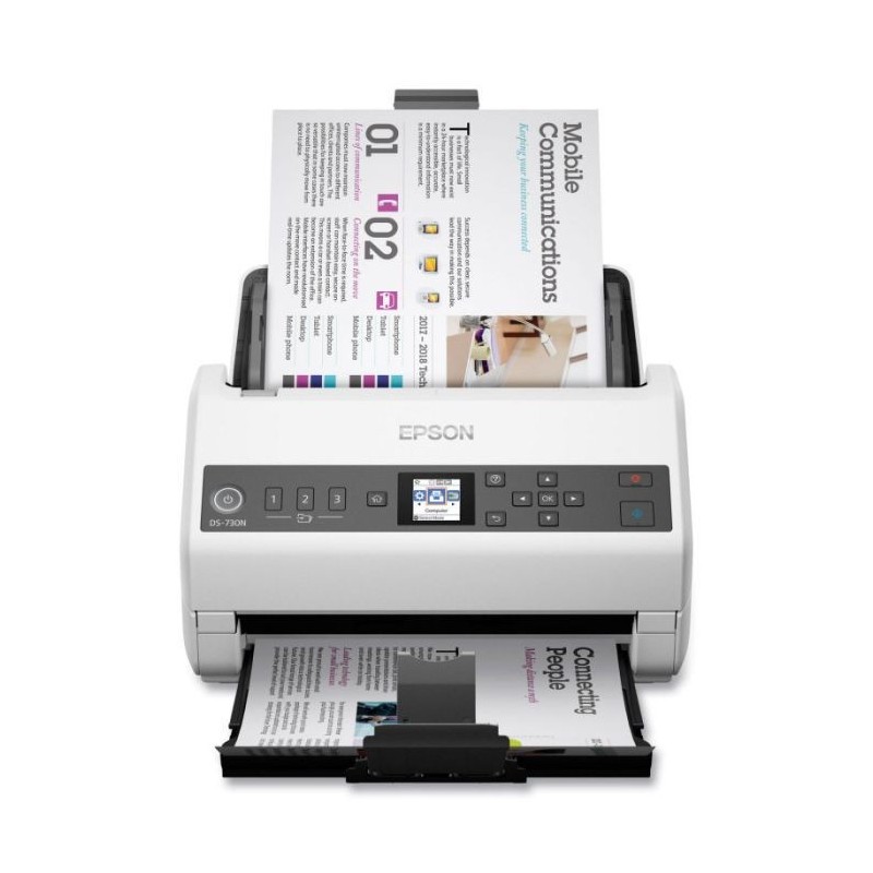 Scanner professionnel interactif avec réseau - Écran LCD intégré: couleur , Diagonale: 1,44 po (3,65 cm) facile d’utilisation - Vitesse de Numérisation (N&B / Couleur): 40 pages/min, 40 images/min - Résolution Optique: 600 DPI x 600 DPI - Résolution Numérisation: 600x600 dpi - Formats de papier: A4 - Chargeur Auto : 100 Feuilles - Grammage Papier: Chargement auto: 27 - 413 g/m² - Numérisation recto/verso - Interfaces: USB 2.0, interface Ethernet (1000 Base100-Base TX/ 10-Base-T) - Dimensions: 296 x 169 x 167 mm - Poids: 3.6 kg - Couleur: Blanc et Noir