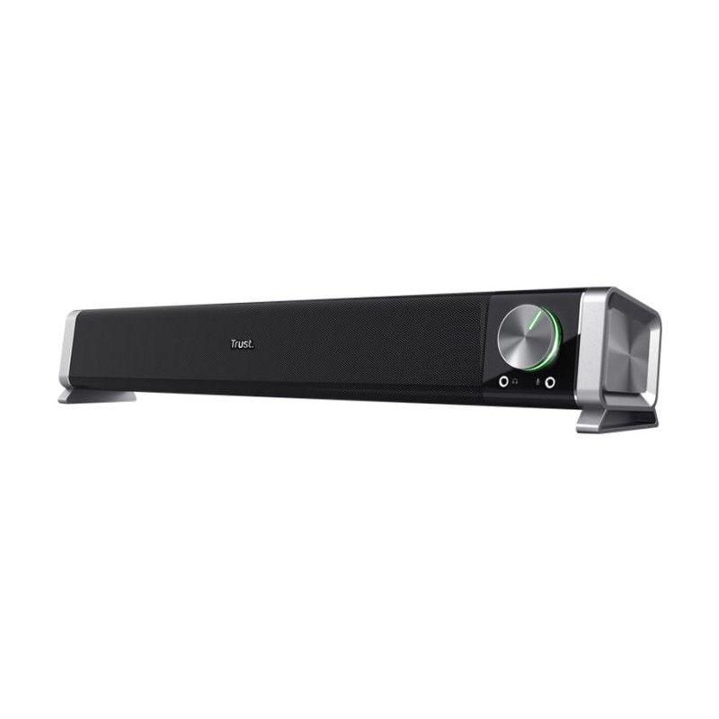 Barre De Son TRUST ASTO - Technologie de connectivité: Filaire - Interface: jack 3.5 mm - Puissance de sortie (crête): 12 Watts - Puissance de sortie (RMS): 6 Watts - Taille du pilote: 45 mm - Fréquence de réponse: 20 Hz - 20 000 Hz - Enceinte compacte délivrant un son stéréo enrichi s’intégrant sous tous - les moniteurs de PC ou les écrans de téléviseurs - Grand bouton de commande de volume éclairé - Connecteurs pour casque et micro placés de manière pratique en façade - Alimentation USB - Compatible avec PC et ordinateur portable - Dimensions: 470 x 75 x 70 mm - Couleur: Noir - Garantie: 1 an