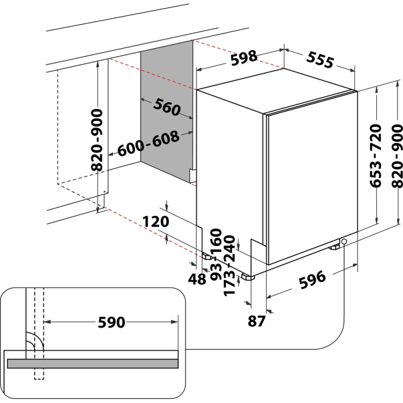 Lave Vaisselle encastrable WHIRLPOOL WRIC 3C26 - 14x Couverts - 8x Programmes - Classe d’efficacité énergétique: E - Consommation d'eau par cycle 9.5 - Ouverture de porte automatique - Panier supérieur modulable - Affichage du temps restant - Emissions de bruit acoustique dans l'air 46 - Affichage du temps restant - Multizone: Panier inférieur ou supérieur - Panier supérieur réglable en hauteur - Panier avec poignée - Équipé d'un panier à couverts - Dimensions 82 x 59.8 x 55.5 cm - Couleur Blanc - Garantie 2 ans + Livraison Gratuite
