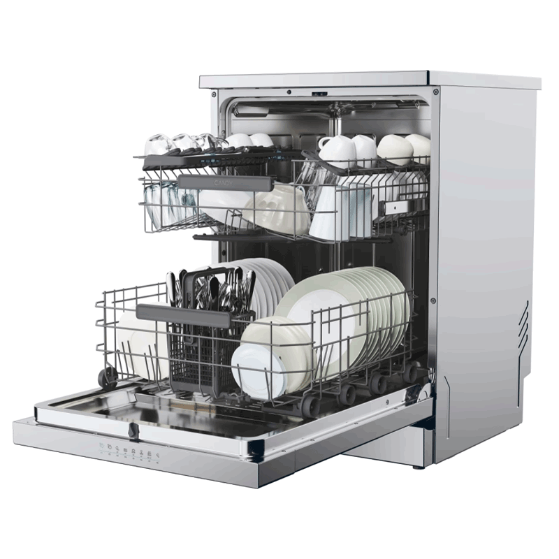 Lave-vaisselle CANDY CF6C4F0W - 16 Couverts - Largeur 60 cm - Classe énergétique: C - Consommation d'énergie sur 100 cycles éco: 76 kWh - Consommation d'eau par cycle: 10.9 L - Consommation d'énergie sur 100 cycles - lavage: 76 kWh - Niveau sonore 44 dB - Fonctionnalités: Demi Charge, Départ différé - Pose libre - WiFi - 8 Programmes - Technologies: Speed-Drive Inverter, Smart Door, - 2 paniers: Panier supérieur réglable en hauteur hOn - Démarrage différé 24h - ash&Dry 35 min - Affichage du temps restant - Dimensions: 85 x 59.7 x 59.8 cm - Poids: 45.5 kg - Couleur inox - Garantie 2 ans