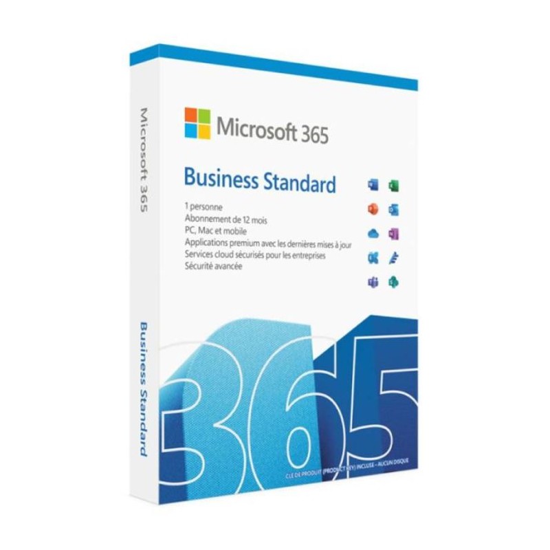 Microsoft Office 365 Business Standard - Licence: 1 Utilisateur - Langue du logiciel: Français - Pour PC, Mac, iOS et Android - Utilisez une seule licence couvrant les applications Microsoft 365 entièrement installées sur cinq appareils mobiles, cinq tablettes et cinq PC ou Mac par utilisateur - Stockez et partagez des fichiers avec 1 To de stockage en ligne OneDrive par utilisateur - Région : Afrique de nord - Licence d'abonnement: 1 an " Licences électronique virtuelle ESD "