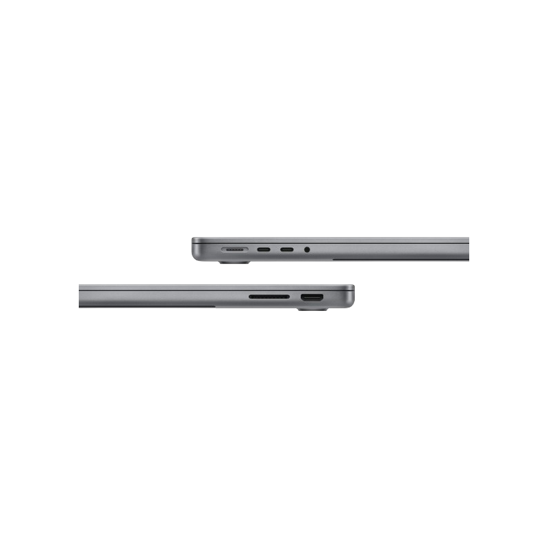 Écran Liquid Retina XDR 14" - Puce Apple M3 - Processeur 8 cœurs, (GPU à 10 cœurs, moteur neuronal à 16 cœurs) - Mémoire 8 Go - Disque SSD 512 Go - 2x hunderbolt/USB 4 - HDMI - Emplacement pour carte SDXC - Prise casque - Magic Keyboard rétroéclairé avec Touch ID - USB-C - Bluetooth - Wi-Fi - Couleur Gris sidéral - Garantie 1 an
