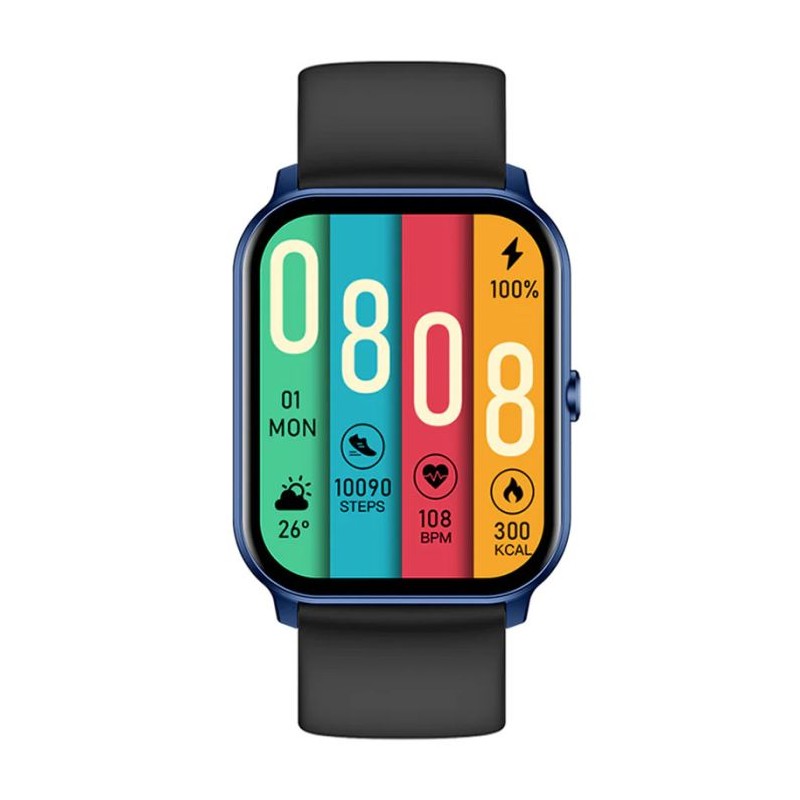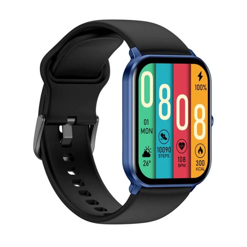 Connectivité: Bluetooth 5.2 - Écran Amoled HD 1.78" (368x 448px) - Microphone et Haut-parleur - Appel Bluetooth - Alerte de Fréquence cardiaque anormale, moniteur d'oxygène sanguin - 60 Modes sport - Capacité de batterie: 280mah - Temps de Charge: 2 heures - Autonomie: 3-6 jours, jusqu'à 10 jours en veille - Étanche: IP68 - Ul dynamique - Compatibilité: Android 4.4+ / IOS 9.0+ - Couleur: Bleu et Noir - Garantie: 2ans