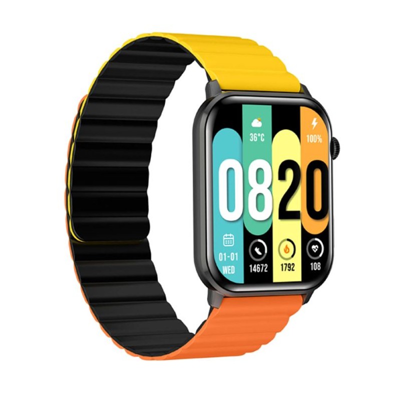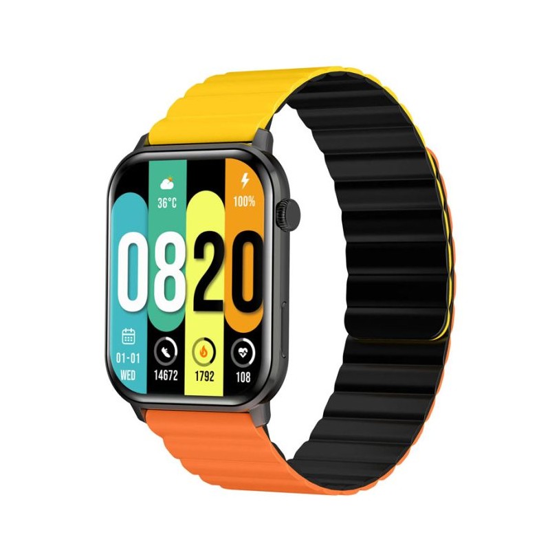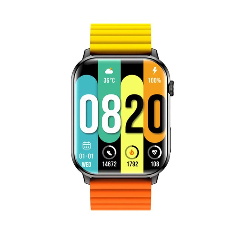 Écran ultra FHD AMOLED 1.78" - Connectivité: Bluetooth 5.2 - Appels Bluetooth stable - Assistant vocal AI - Cpacité de batterie: 330mAh - Usage typique: 3.5 - 6.5 jours - Affichage permanent - Mesure de fréquence cardiaque anormale 24h/24 et 7j/7 - Suivi complet de la santé - Entraînement respiratoire Relax Mind - Corps en métal élégant et couronne de navigation pratique - Lecteur de musique - 100 Modes sportifs - Les jeux intégrés s'amusent - étanche IP68 - Compatibilité : Android et iOS - Couleur: Orangé&jaune - Garantie: 2ans