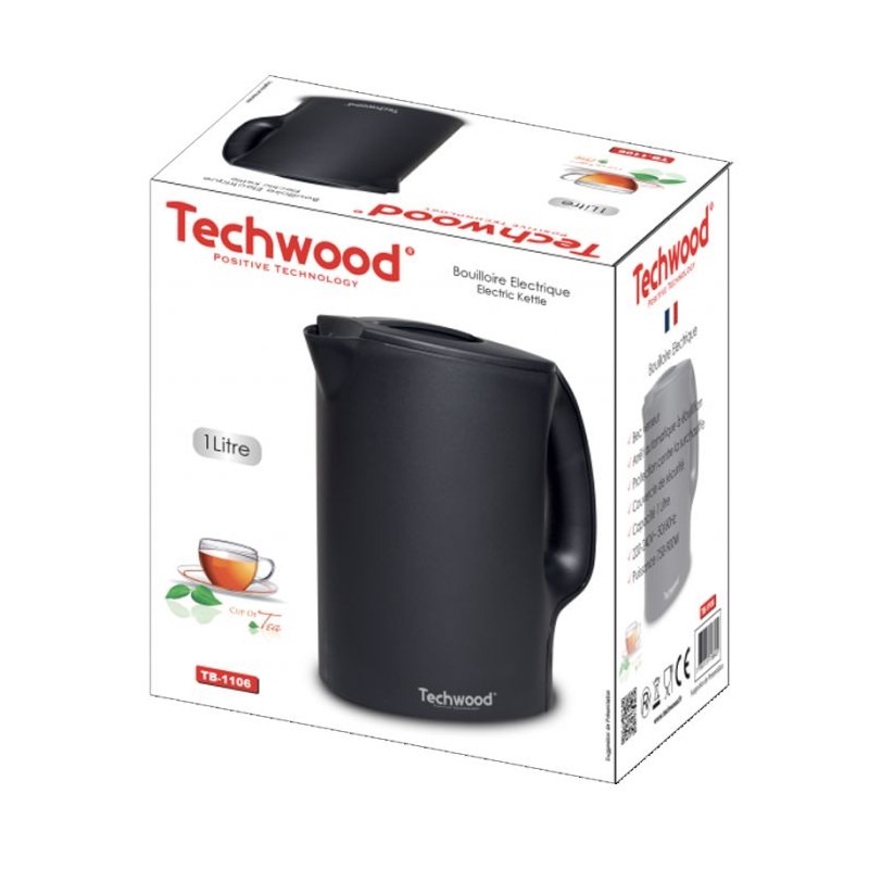 Bouilloire TECHWOOD - Puissance: 750-900 Watts- Capacité: 1 litre - Arrêt automatique à ébullition - Protection contre la surchauffe - Couvercle de sécurité - Bec verseur - Alimentation: 220-240V~ 50/60Hz - Design moderne et ergonomique - Couleur: Noir - Garantie: 1 an
