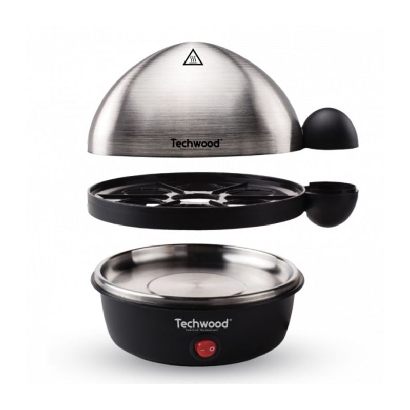 Cuiseur A Oeuf Electrique 3EN1 TECHWOOD - Puissance: 350 Watts - Capacité: Cuit 7 œufs à la coque - Cuit 4 œufs au plat - Cuisson Vapeur - Bouton Marche/Arrêt - Plaque chauffante en Inox facile à nettoyer - Couvercle en Inox Brossé - Arrêt automatique et signal sonore - Alimentation: 220-240V~ 50Hz - Accessoires: Plateau vapeur, Ustensile pour cuire 4 œufs au plat, Ustensile pour œufs à la coque - Verre mesureur - Couleur: Inox - Garantie: 1 an