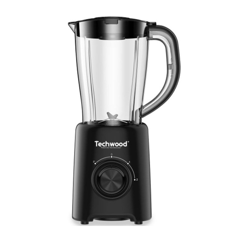 Blender TECHWOOD - Puissance: 500 W - Capacité: 1.5 litres - 2 Vitesses - Fonction impulsion - Nettoyage facile - Pieds anti-dérapant - Lames en acier inoxydable - Couleur: noir - Garantie: 1an