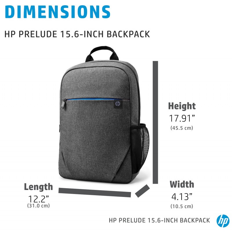 Sac à Dos HP Prelude 15.6" - 100 % polyester, imperméable - Stockage : 1 compartiment principal - 4 poches internes - 2 poches externes - Dimensions 43 x 29 x 14 cm - Poids: 0.38 kg - Couleur Gris Foncé - Garantie 1 an