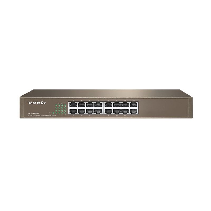Nombre de Ports: 16 ports Ethernet 10/100 Base-TX (Auto MDI/MDIX) - Normes Réseau: IEEE 802.3, IEEE 802.3u, IEEE 802.3x - Indicateur LED: 1 * Puissance, 16 * Lien/Acte - Matériel: Métal - Capacité de commutation: 3,2 Gbit/s - Taux de transfert de paquets: 2.38Mpps - Mémoire tampon: 1,25 Mo - Tableau d'adresses MAC: 4K - Puissance: Entrée : 100-240 V CA 50/60 Hz - Consommation d'énergie: Max :<6 W - Dimensions: 294.0x180.0x44.0mm - Couleur: Marron - Garantie : 2 ans
