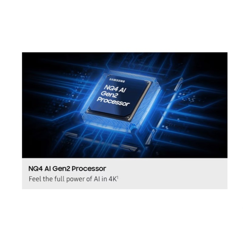 Tv Samsung 65" Neo QLED UHD 4K Smart TV - Système d’exploitation : Téléviseur intelligent Tizen - Fréquence de rafraîchissement : 100 Hz - Résolution : 4K (3840 x 2160 Pixels) - Moteur d'images : Processeur NQ4 AI Gen2 - HDR 10+ - Méga Contraste - Micro gradation : Gradation UHD suprême - Color Booster Pro - Son adaptatif Q-Symphonie - Puissance Sonore : 20W - Type de haut Parleur : 2CH - Fonctionne avec AI Speaker - Multi-Vues (jusqu'à 2 vidéos) - Audio 360° - Technologie Object Tracking Sound OTS Lite - Color Booster - SmartThings Hub - Connecteurs : 4x HDMI, 2 x USB-A, 1x Ethernet (RJ45), 1x Entrée RF - Connectivité : Wi-Fi 5 - Bluetooth 5.3 - VESA : 400 x 300 mm - Dimensions (LxHxP) : 1451,7 x 890,4 x 279,4 mm (avec Support), 1451,7 x 832,2 x 25,7 mm (Sans Support) - Garantie 2 ans