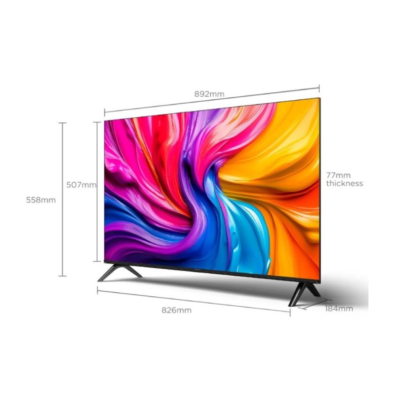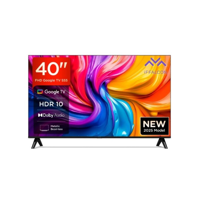 Tv iFFALCON by TCL 40" Smart S55 FHD 2K - Résolution: 1920×1080 pixels - Google TV - Format d’image: 16:09 - Taux de rafraîchissement: 60 Hz Full HD - Dolby Audio - HLG - HDR 10+ - Mode de visualisation multiple - Mode Jeux - Puissance sonore: 2x10W - Google Assistant, Google Cast, Profil Enfant - Connectivité: Wi-Fi, Bluetooth 5.0 - Connecteurs: 2 x HDMI | 1 x USB |1 x LAN | 1 x SORTIE AUDIO NUMÉRIQUE - Design métallique sans cadre - Dimensions avec support: 892x184x558 mm - Garantie: 2 ans