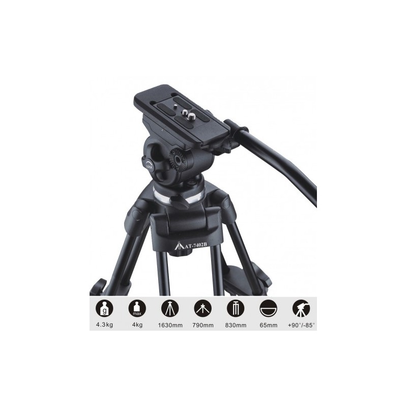 Poids 4.4kg Capacité 4kg Longueur repliée 810mm Hauteur de travail 770-1600mm Poids tête 1,5kg Bol de 75mm Mouvement de bascule +90°/-45° Molette d'ajustement de la friction sur le mouvement de basculement de la tête Molette de blocage de la tête